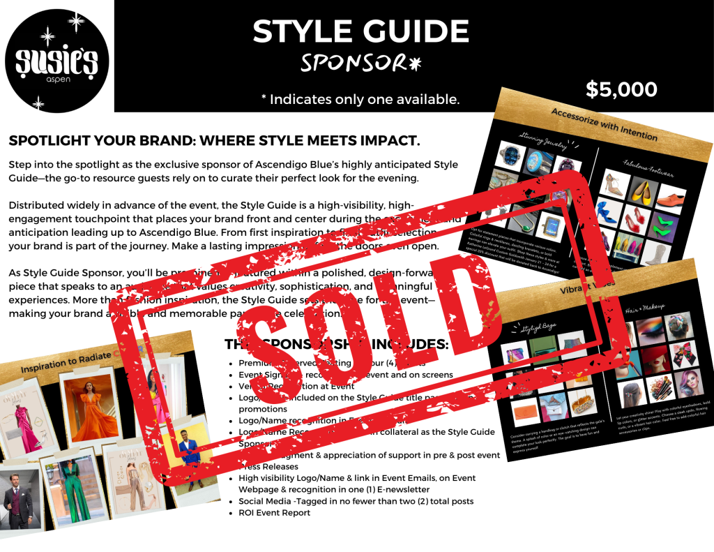 We are proud to shine a spotlight on Susie’s Aspen, the exclusive Style Guide Sponsor for Ascendigo Blue Aspen. A beloved Aspen legacy for over 30 years, Susie’s Aspen offers one-of-a-kind men’s and women’s fashions, designer labels, and elevated consignment pieces that blend timeless elegance with modern style—tailored for a night to shine.