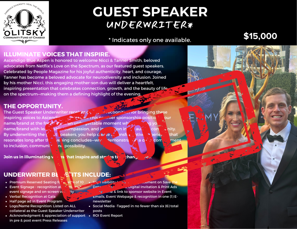 Generously underwritten by The Olitsky Community Fund at Chabad, Ascendigo is honored to welcome Tanner Smith and his mother Nicci Smith, beloved personalities from the hit Netflix series Love on the Spectrum, as featured guest speakers for the 2026 gala.