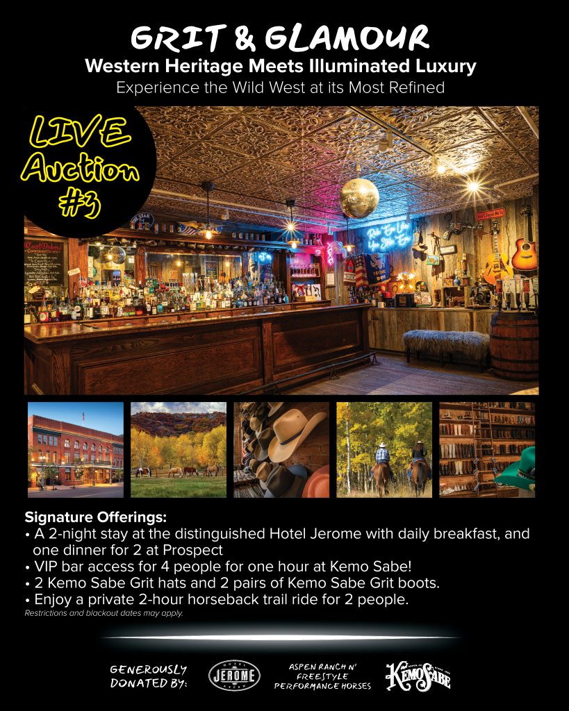 Aspen’s Favorites – Experience the very best of Aspen with this curated collection of the town’s most coveted offerings. From indulgent self-care and chef-driven dining to unforgettable adventures, this package captures the spirit, style, and sophistication of our mountain community. CLICK HERE to view the full list of included items!