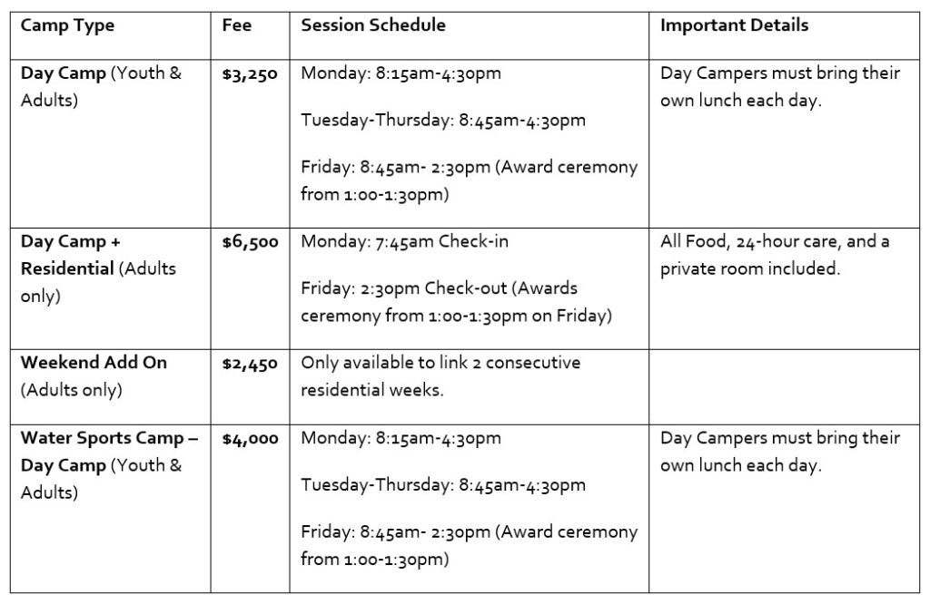 - Water Sports Camp (Youth & Adults): Session 9: Day Camp Only
